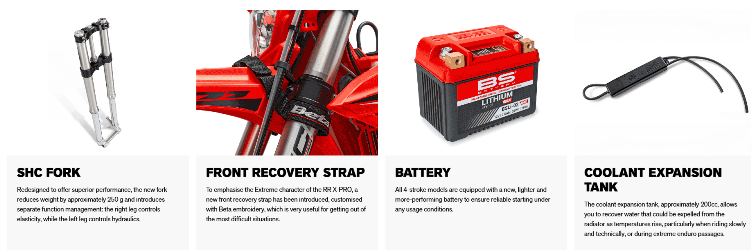 The RR X-PRO 350 4T is the most easy to handle displacement in the 4T range: it prefers high rpm riding, while maintaining linear and manageable power delivery. It is the ideal choice for those looking for an agile and fun 4T, without sacrificing Beta’s racing DNA.